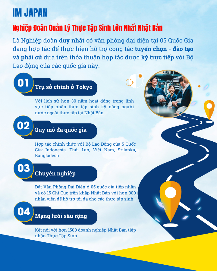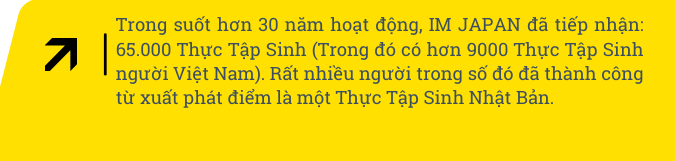 IM JAPAN đã tiếp nhận hơn 65.000 Thực Tập Sinh (trong đó có hơn 9000 Thực Tập Sinh người Việt Nam). Rất nhiều người trong số đó đã thành công từ xuất phát điểm là một Thực Tập Sinh Nhật Bản